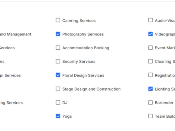 Select event type, location,